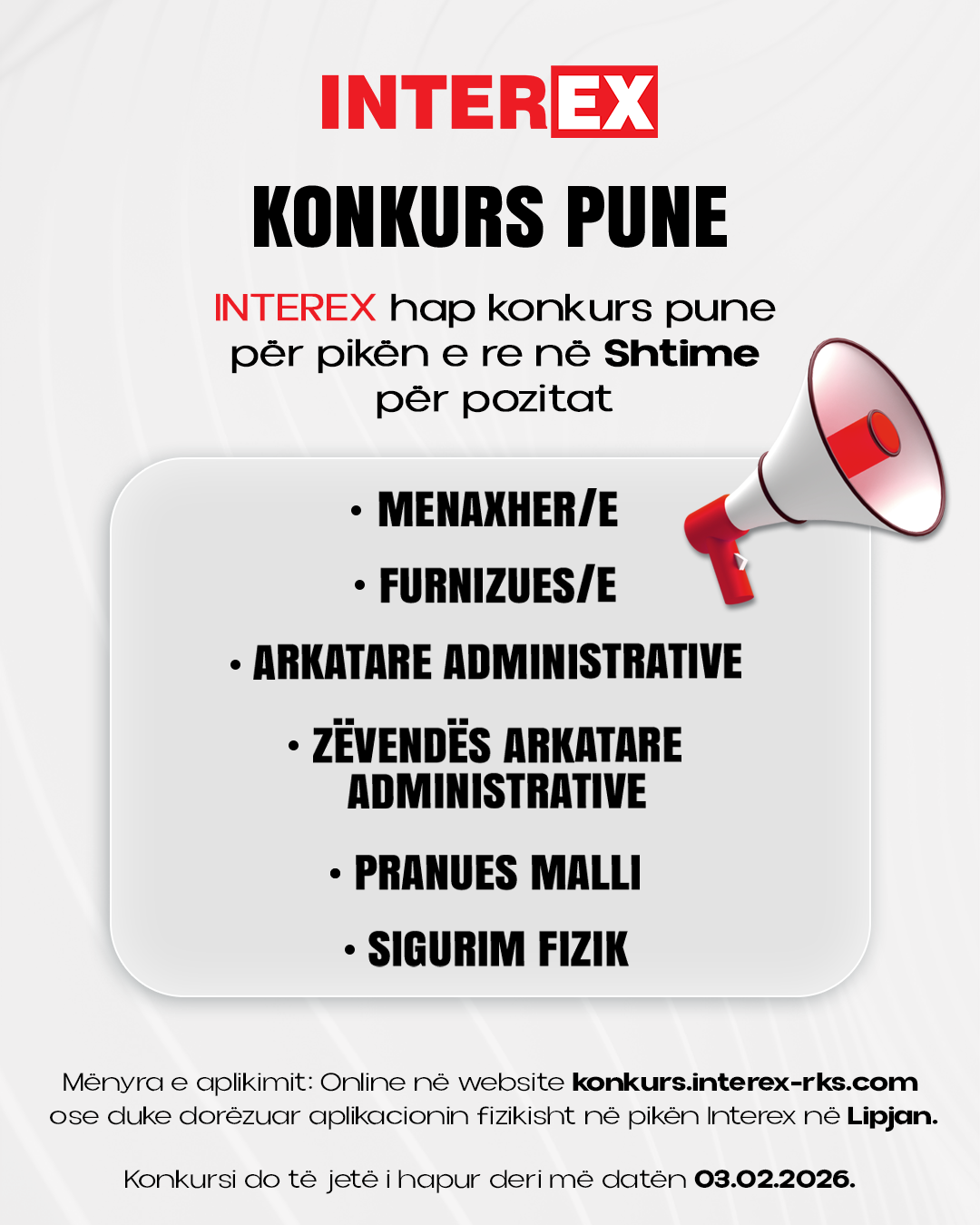INTEREX postuar Jan 23 2026 · 1 ditë të mbetura