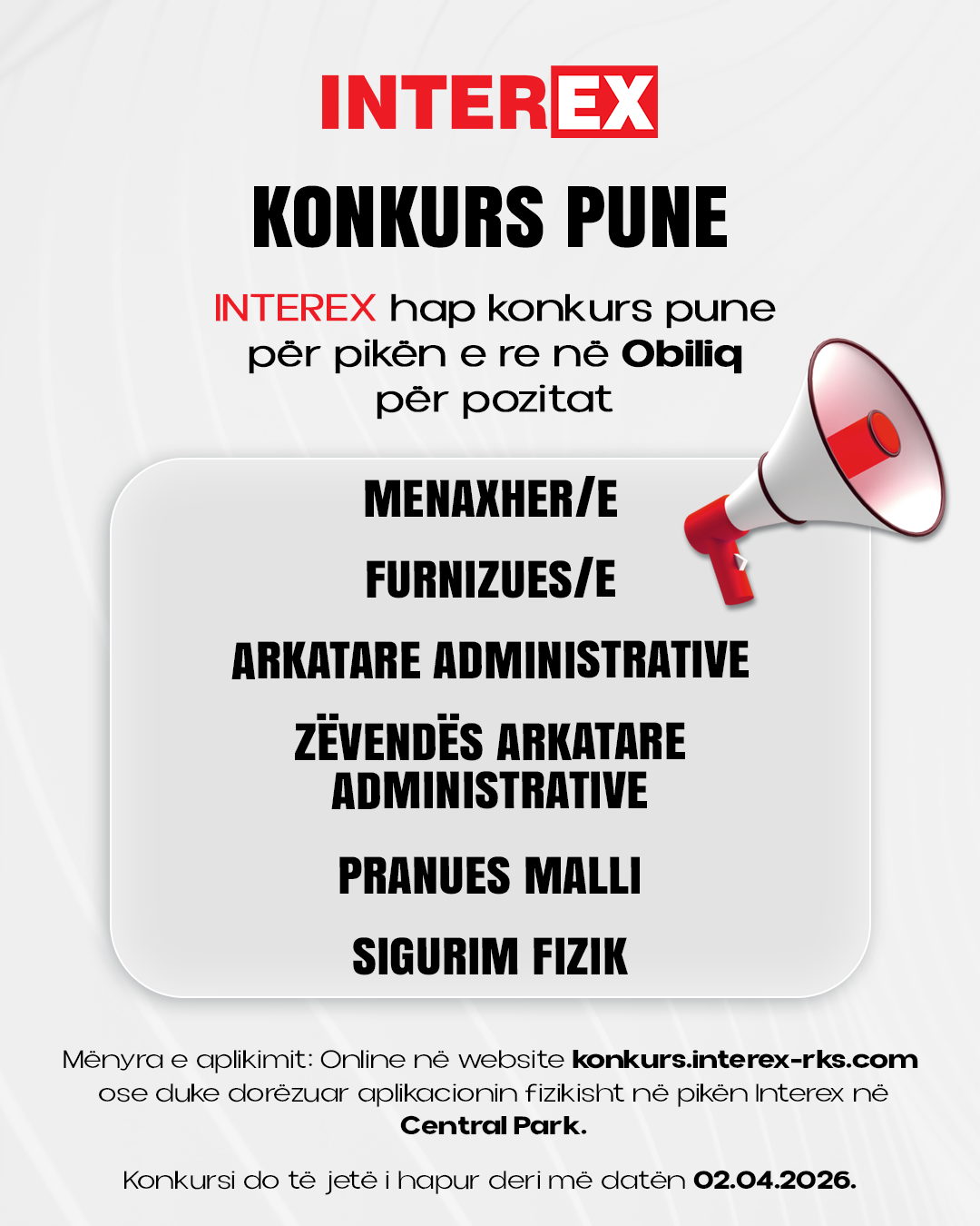 INTEREX postuar Mar 18 2026 · 13 ditë të mbetura