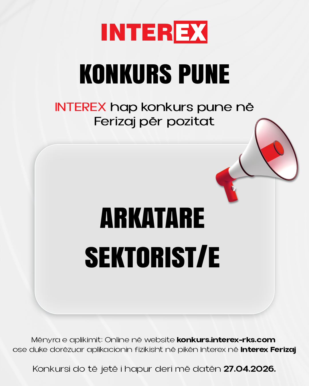 INTEREX postuar Apr 15 2026 · 9 ditë të mbetura